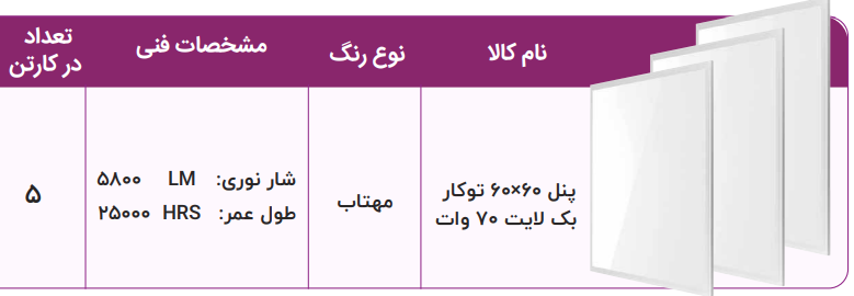 پنل تو کار بک لایت 70 وات لیان نور، یکی از بهترین گزینهها برای تأمین روشنایی در فضاهای مختلف است. این پنل با طراحی زیبا و مدرن، به شما امکان میدهد تا فضای خود را به طور مؤثری روشن کنید و از نور با کیفیت بالا بهرهمند شوید. این محصول با رنگ نور سفید مهتابی(5800LM) که به شما این امکان را میدهد تا با توجه به نوع فعالیت و نیاز خود، نور مناسب را انتخاب کنید.