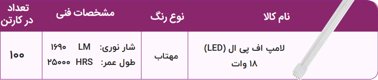 💡لامپ اف پی ال 18 وات LED لیان نور