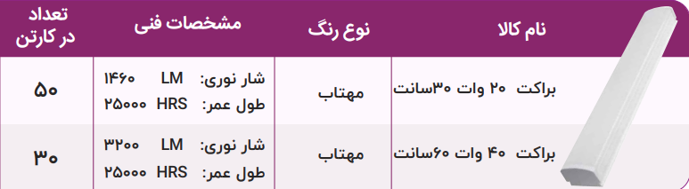 براکت شهاب بدنه آلومنیوم 20تا 40 وات لیان نور